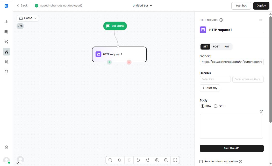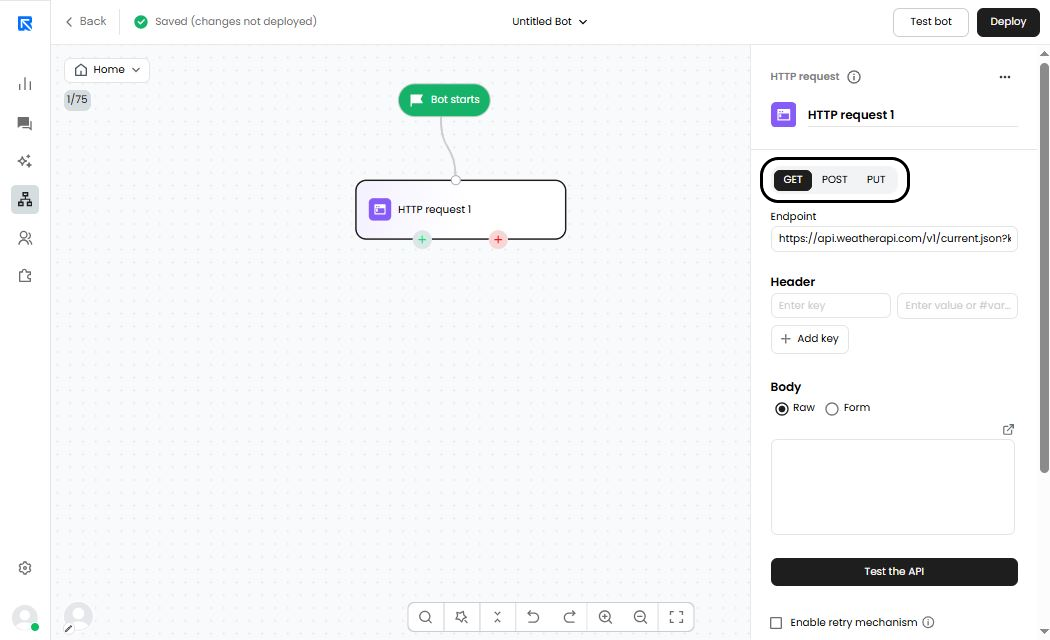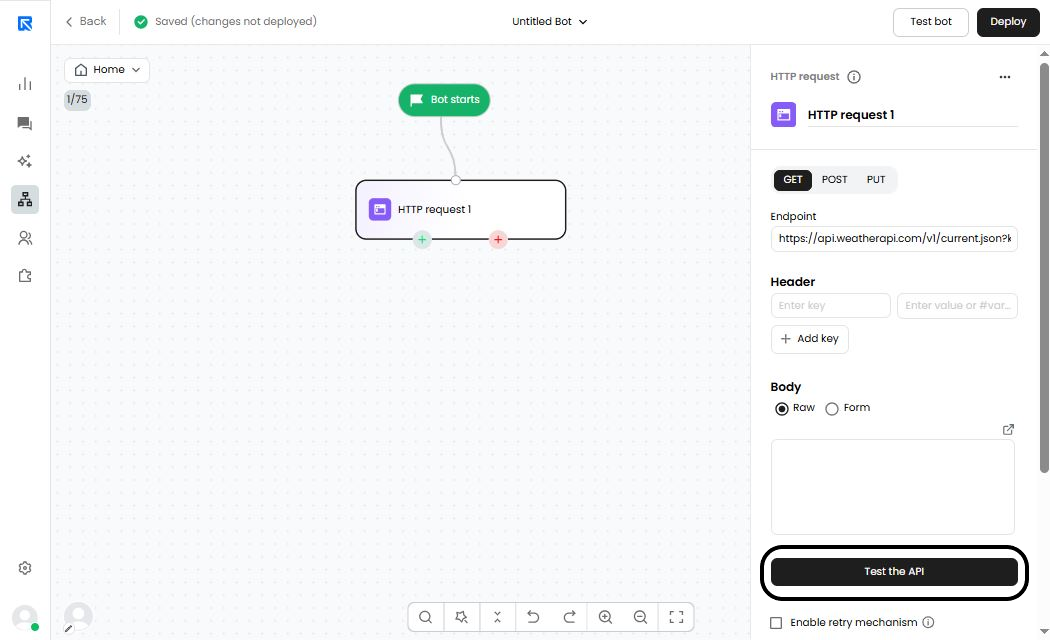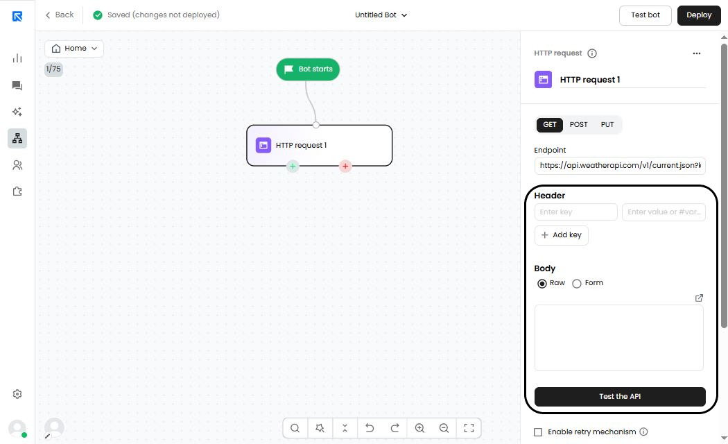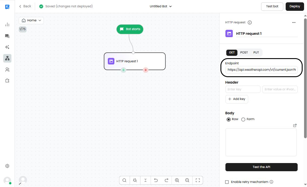 You will need to provide the absolute URL i.e., starting with HTTP or HTTPS. You can also use the variables in the URL by typing '#' as some of the APIs do not have headers and everything is mentioned in the URL itself.<br>