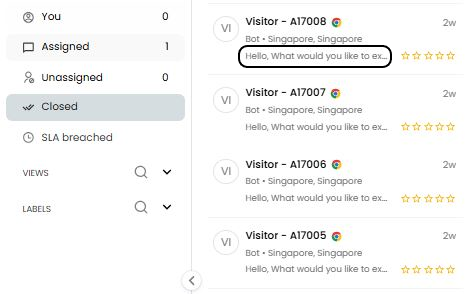 It displays the details of the last message in conversation between the bot and visitor.