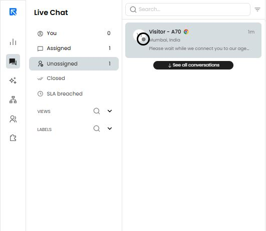 > A green dot signals that a visitor is actively engaged on the website with the bot , while a grey one indicates they have left. Keeping an eye out for those dots allows you to monitor your site's activity in real-time!