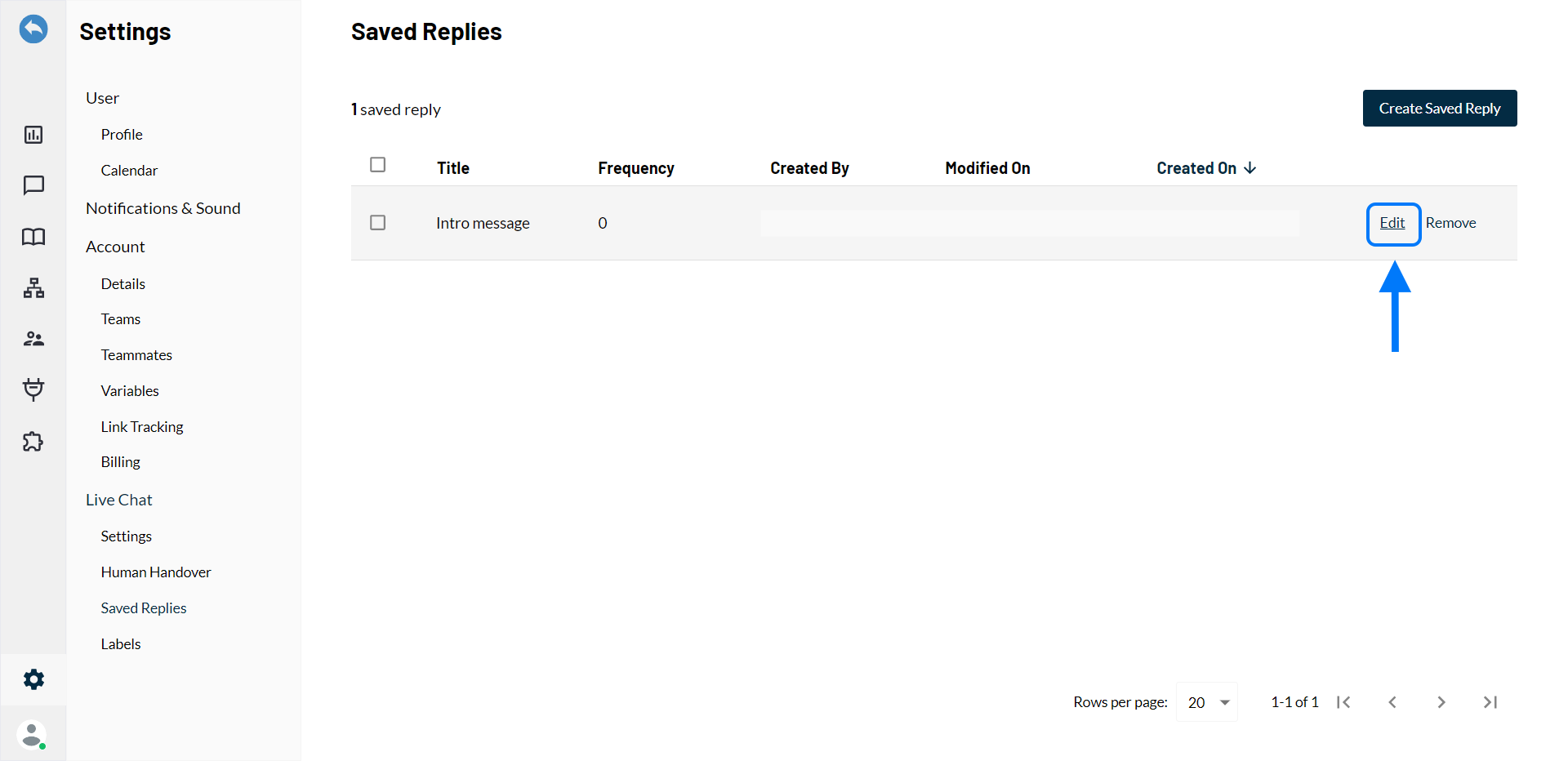 **Step 2:** Click on **'Edit'** button against the saved reply that you wants to modify.