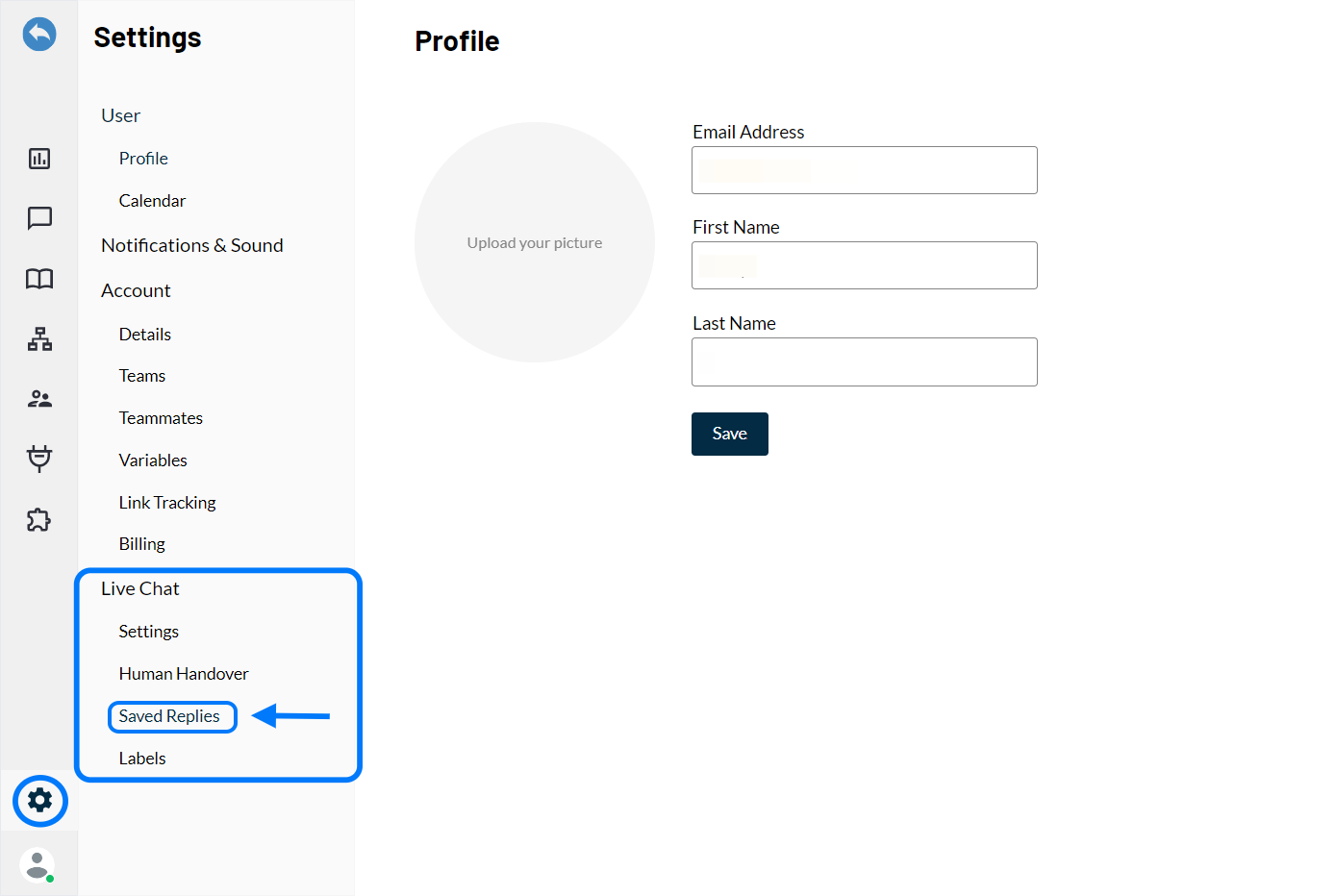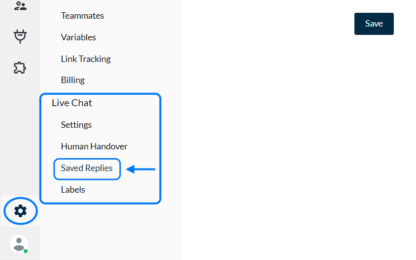 Step 1: Go to **'Settings -> Live Chat -> Saved replies'.**