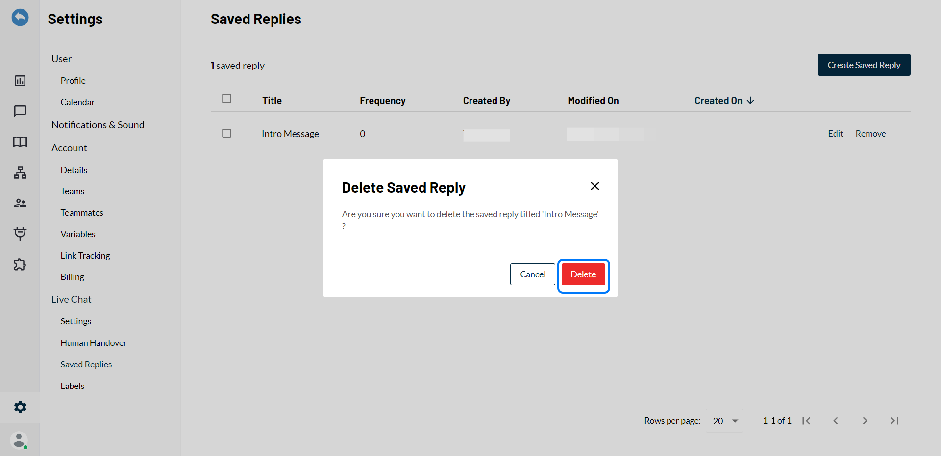 > *Once deleted, the Saved Replies will not be recovered again and the user will have to create the reply all over again.*